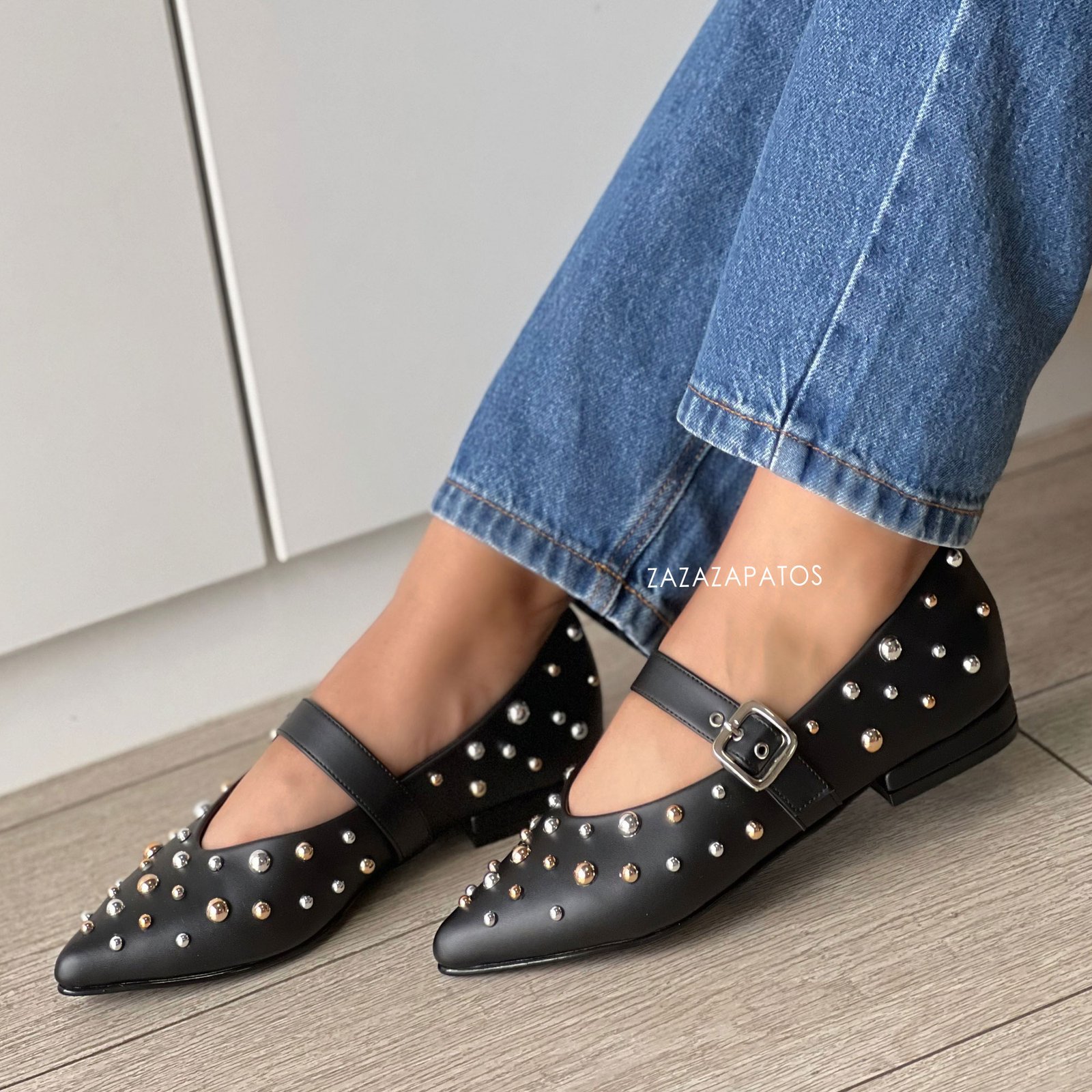 Balerinas con tachas en color dorado y plata en tallas 35 al 39